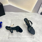 SL CRYSTAL BUCKLE HIGH HEELS BLACK SATIN