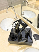SL IVY FLORAL HEEL SANDALS BLACK SATIN