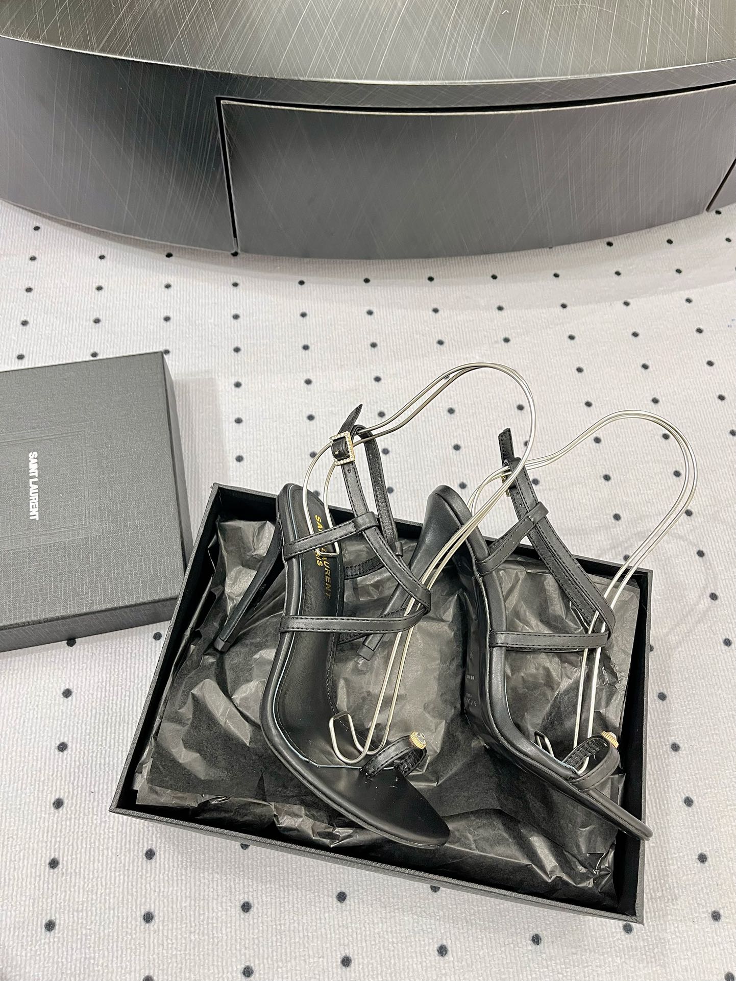 SL LINDEN HEELED SANDALS BLACK CALFSKIN