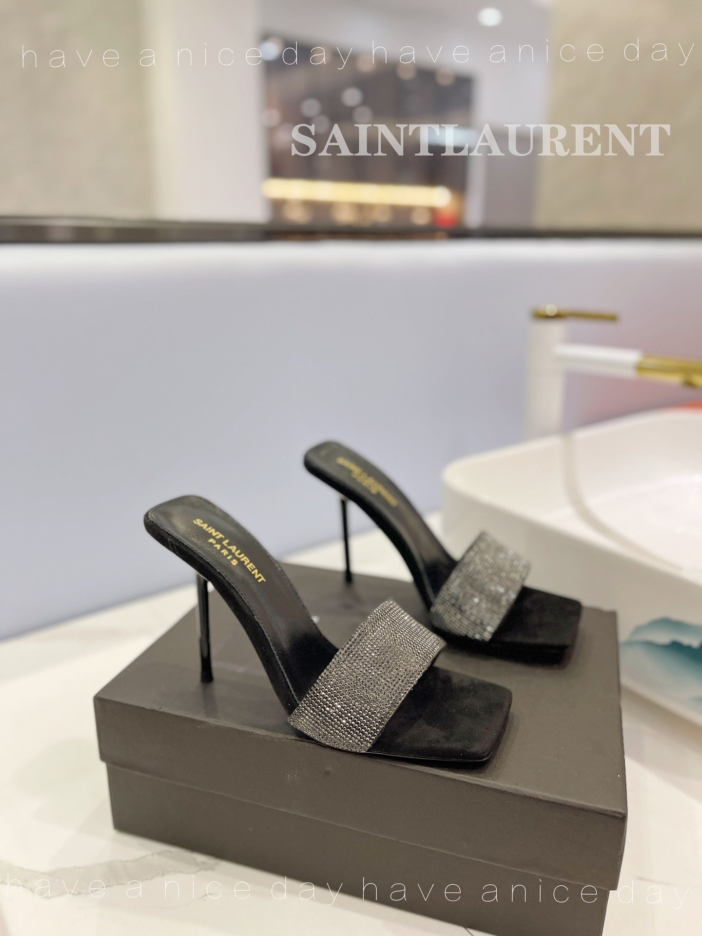 SL LUCKY CRYSTAL HIGH HEELS BLACK CALFSKIN