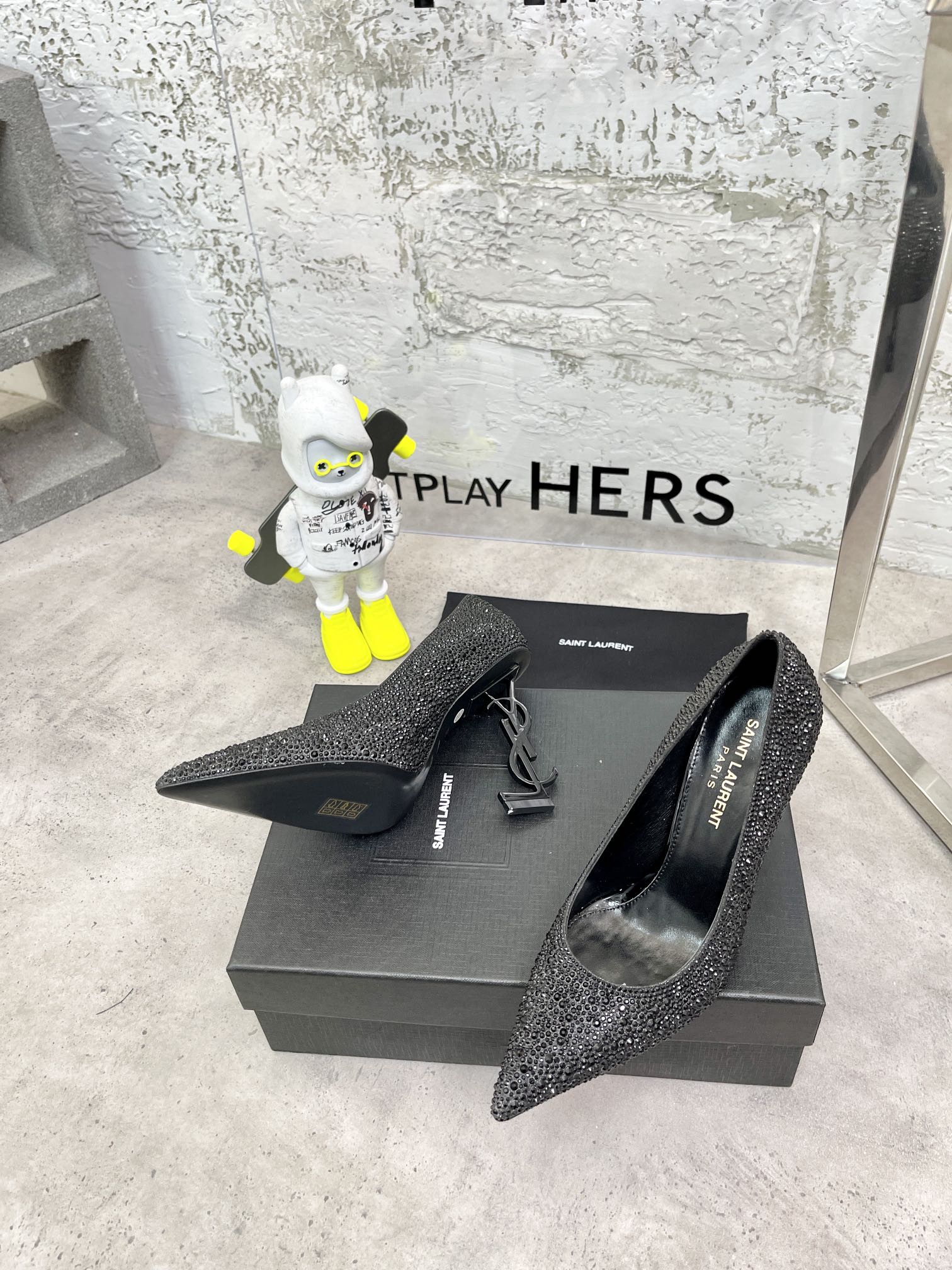 SL OPYUM BASIC HIGH HEEL BLACK CRYSTAL SATIN