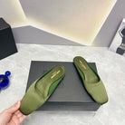 SL SQUARE TOE FLAT MULES MOSS SATIN
