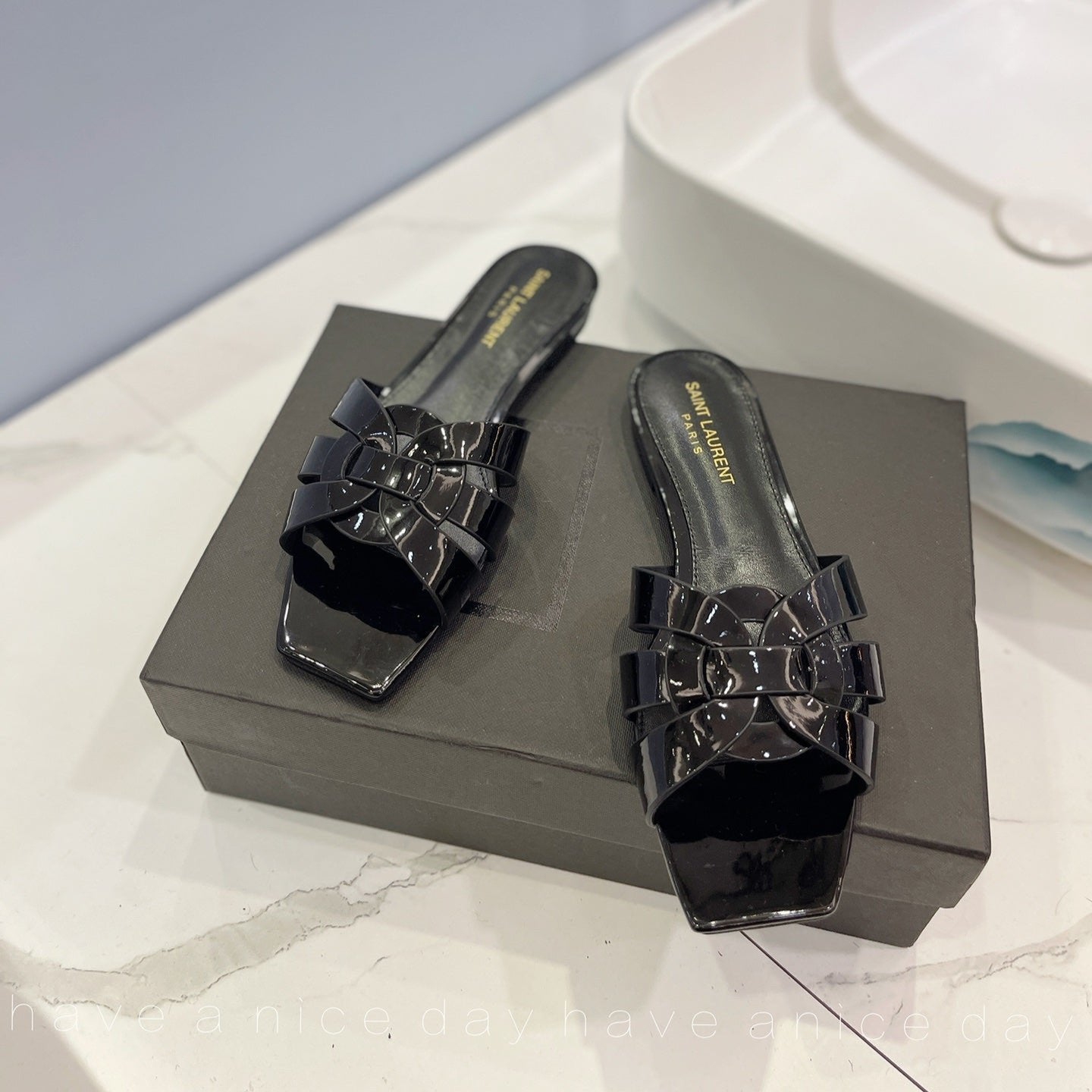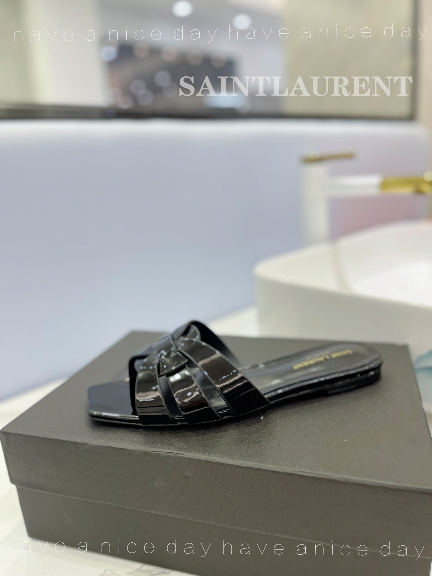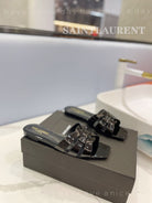 SL TRIBUTE SLIPPERS GLOSSY BLACK CALFSKIN