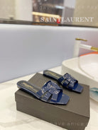 SL TRIBUTE SLIPPERS GLOSSY NAVY CALFSKIN