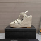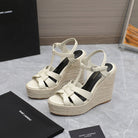 SL TRIBUTE WEDGE SANDALS CREAM POLISHED CALFSKIN