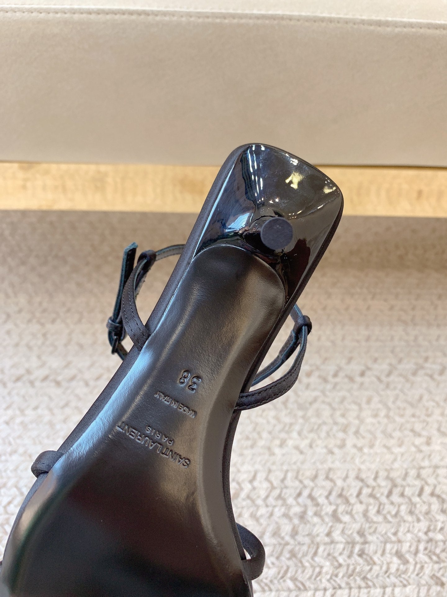 STRAPPY MID HEEL SANDALS IN BLACK SILK