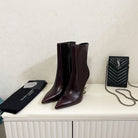 YSL 2025 Logo Metal Heel Ankle Boot Dark Burgundy Cowhide 575002