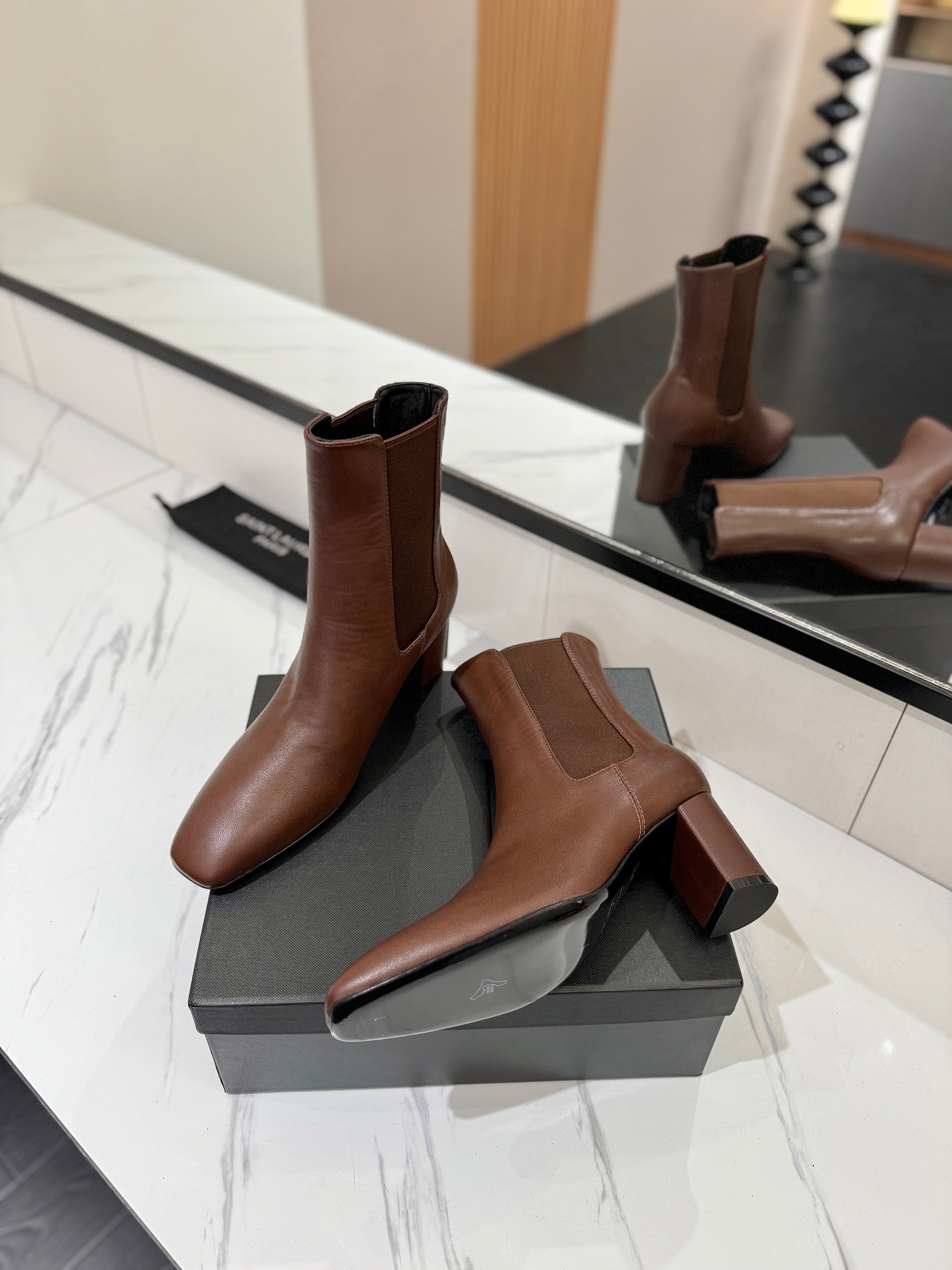 YSL 25 Chelsea Mid-heeled Boot Brown Calfskin 520777