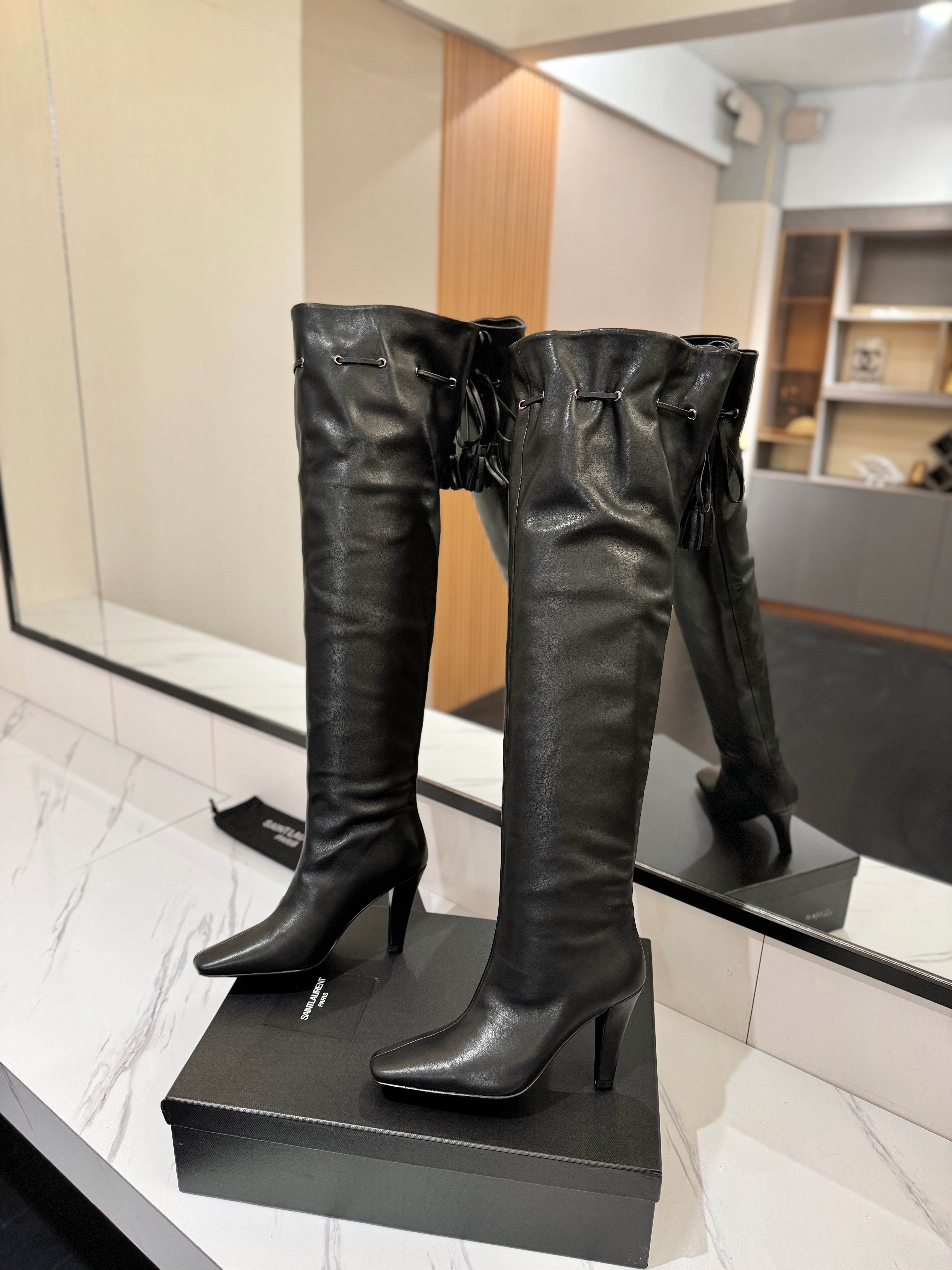 YSL 25 Over-the-Knee Martin Boot Black Calfskin 520782