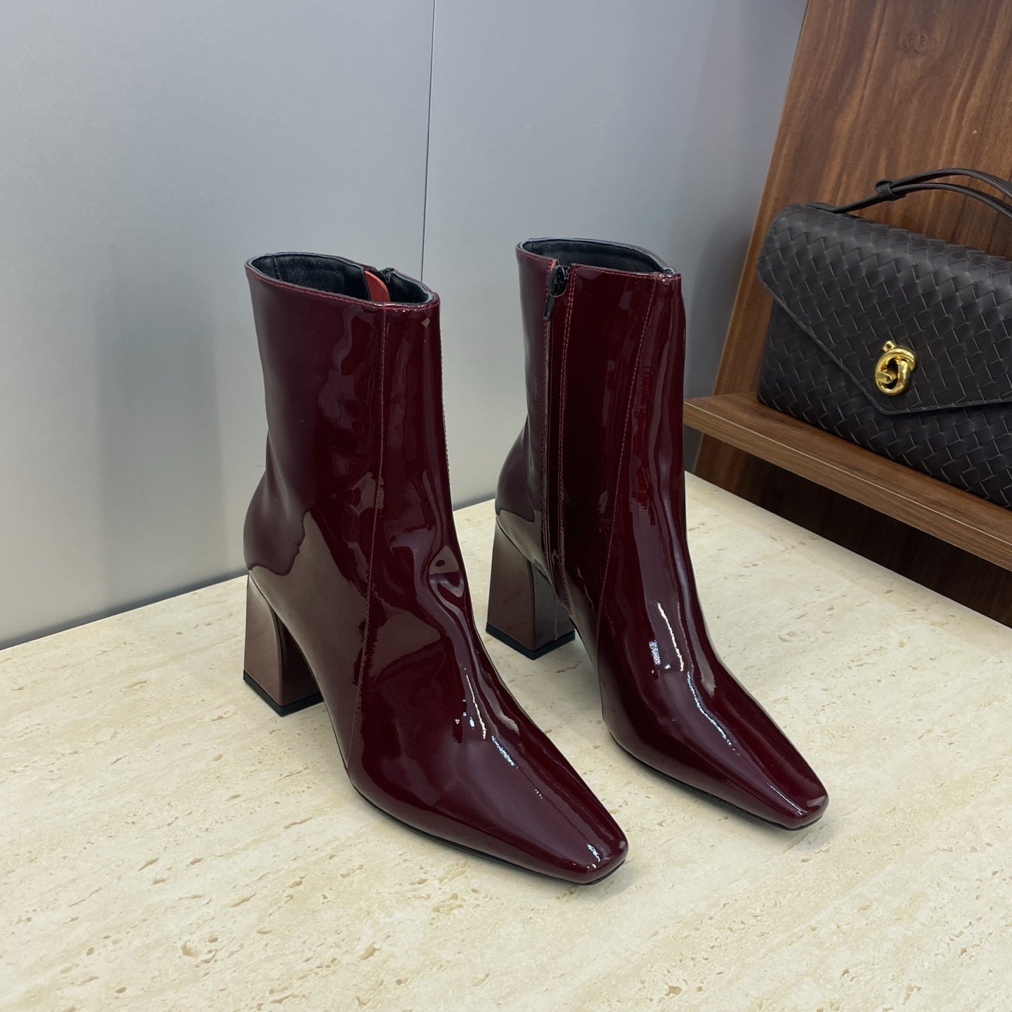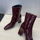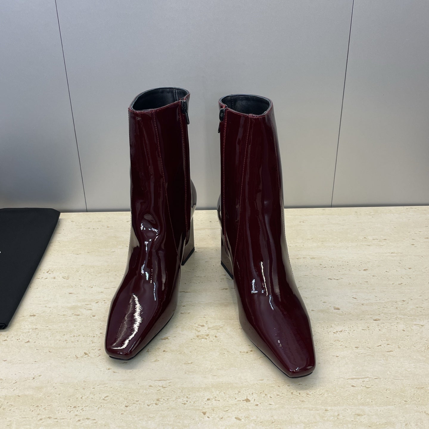 YSL Maxine Boots 75mm Burgundy Patent Leather 551931