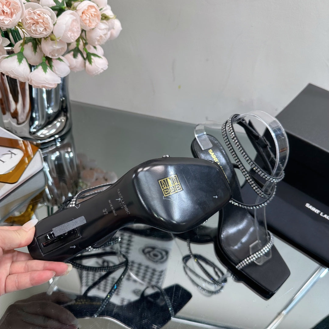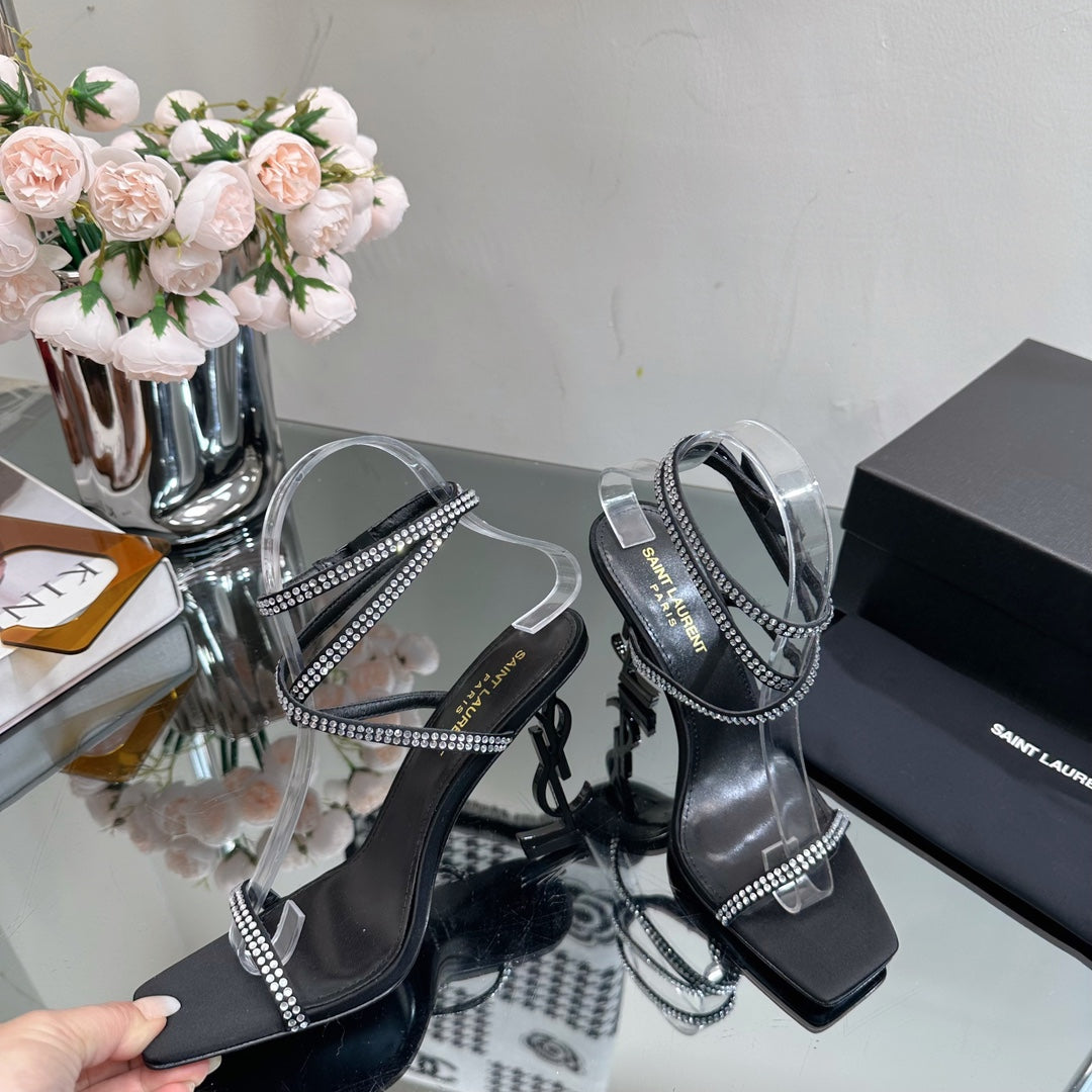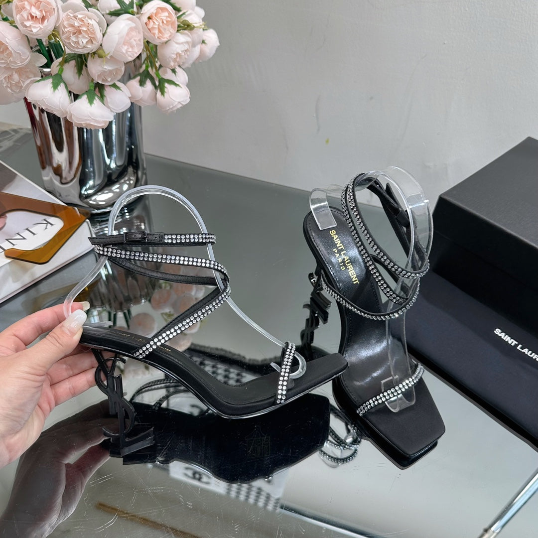 SL OPYUM CRYSTAL HEELED SANDALS BLACK SATIN