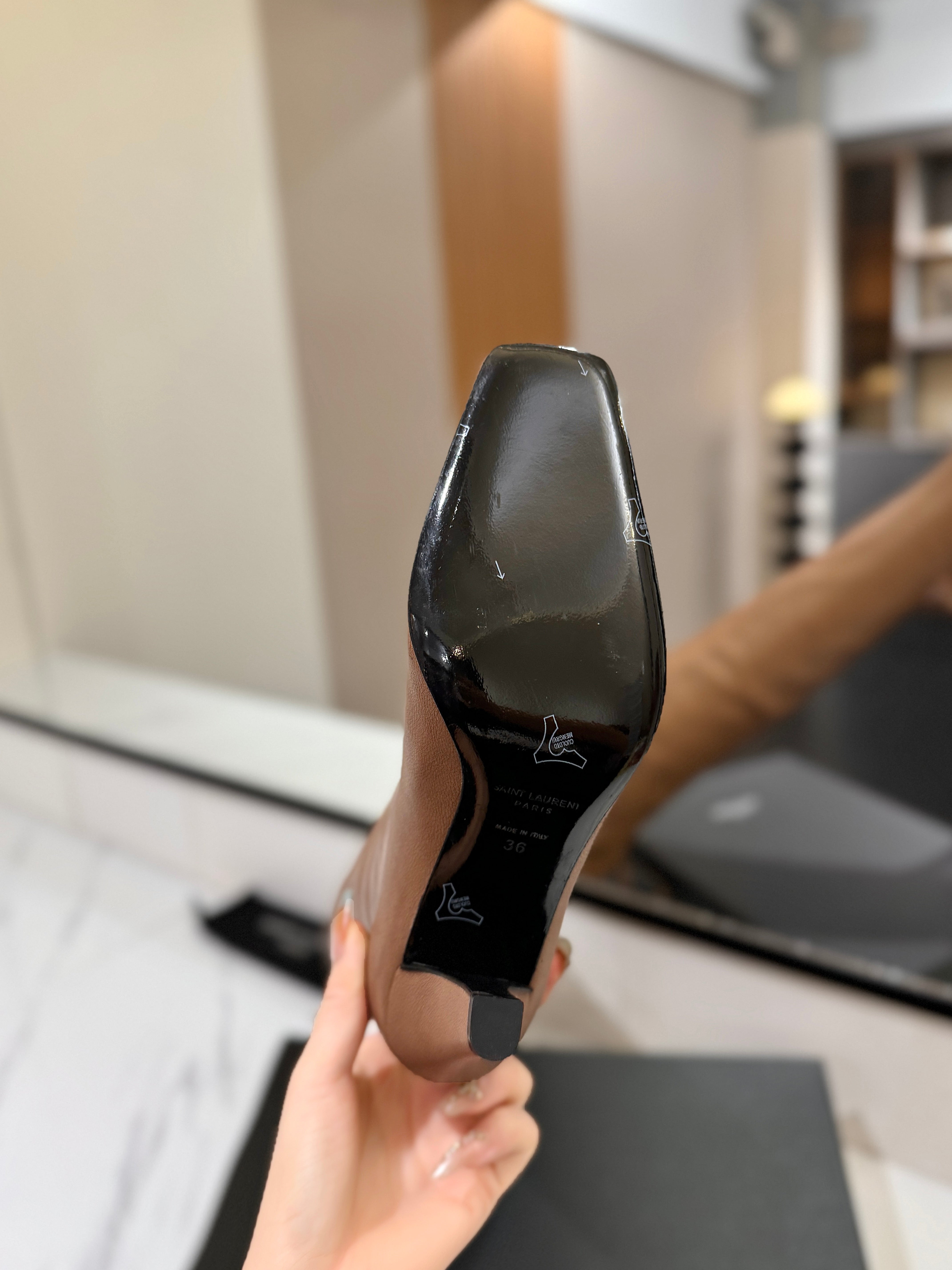 YSL 25 High-heeled Boot Brown Cowhide 520776