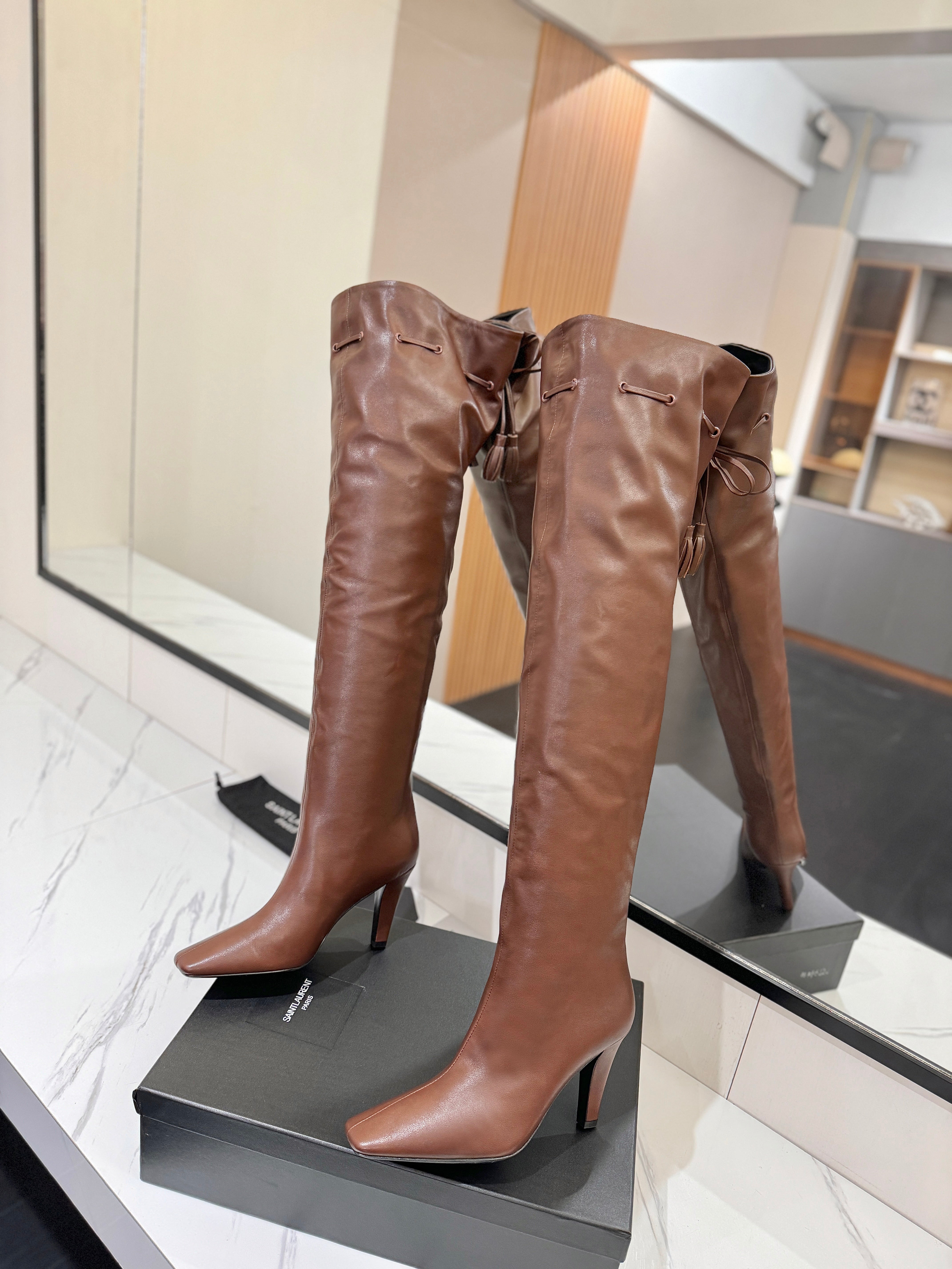 YSL Julia Long Boots 90mm Brown Cowhide 551937