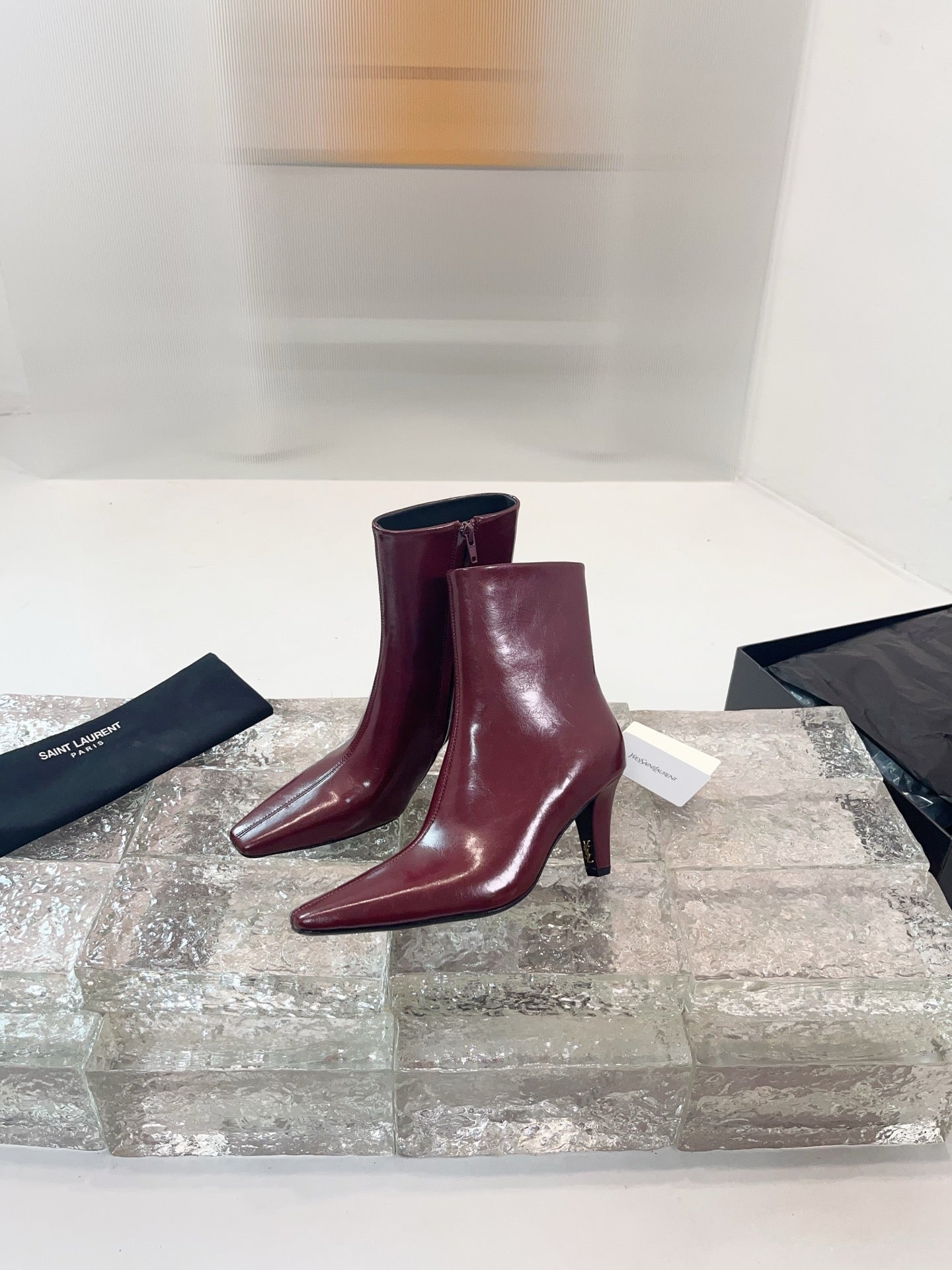 YSL 2025 Short Boot Dark Burgundy Calfskin 575013