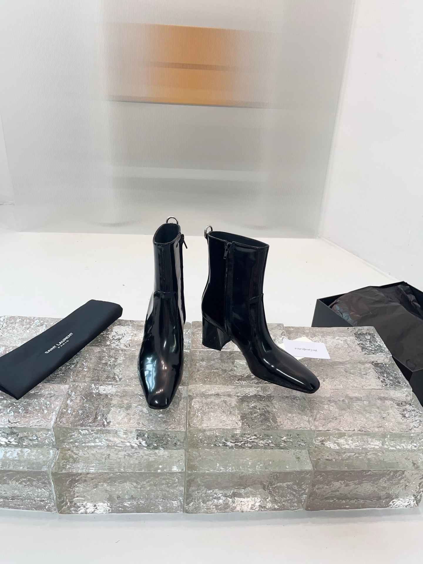 YSL Maxine Boots 75mm Black Patent Leather 551930