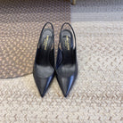 OPYUM BLACK HEEL SLINGBACK PUMPS IN BLACK SMOOTH LAMBSKIN
