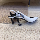OPYUM BLACK HEEL SLINGBACK PUMPS IN WHITE SMOOTH LAMBSKIN