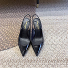 OPYUM RED HEEL SLINGBACK PUMPS IN BLACK GLOSSY CALFSKIN