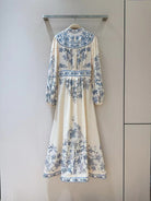 ZIMMERMANN Lucky Plunge Midi Dress Cream/Blue Floral Linen Fabric