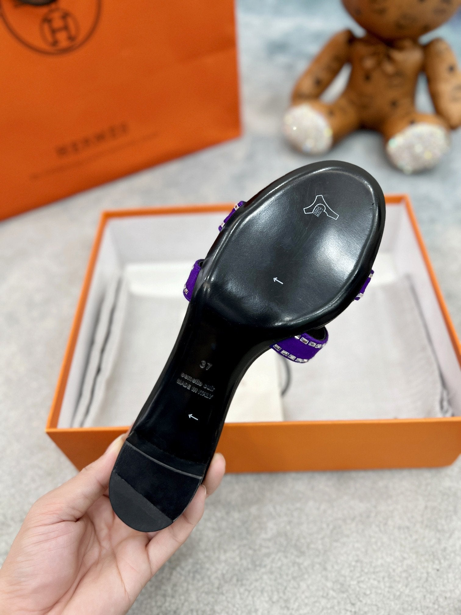 0ran 45 sandal purple black suede goatskin