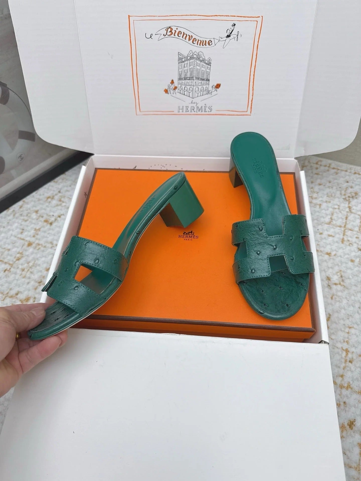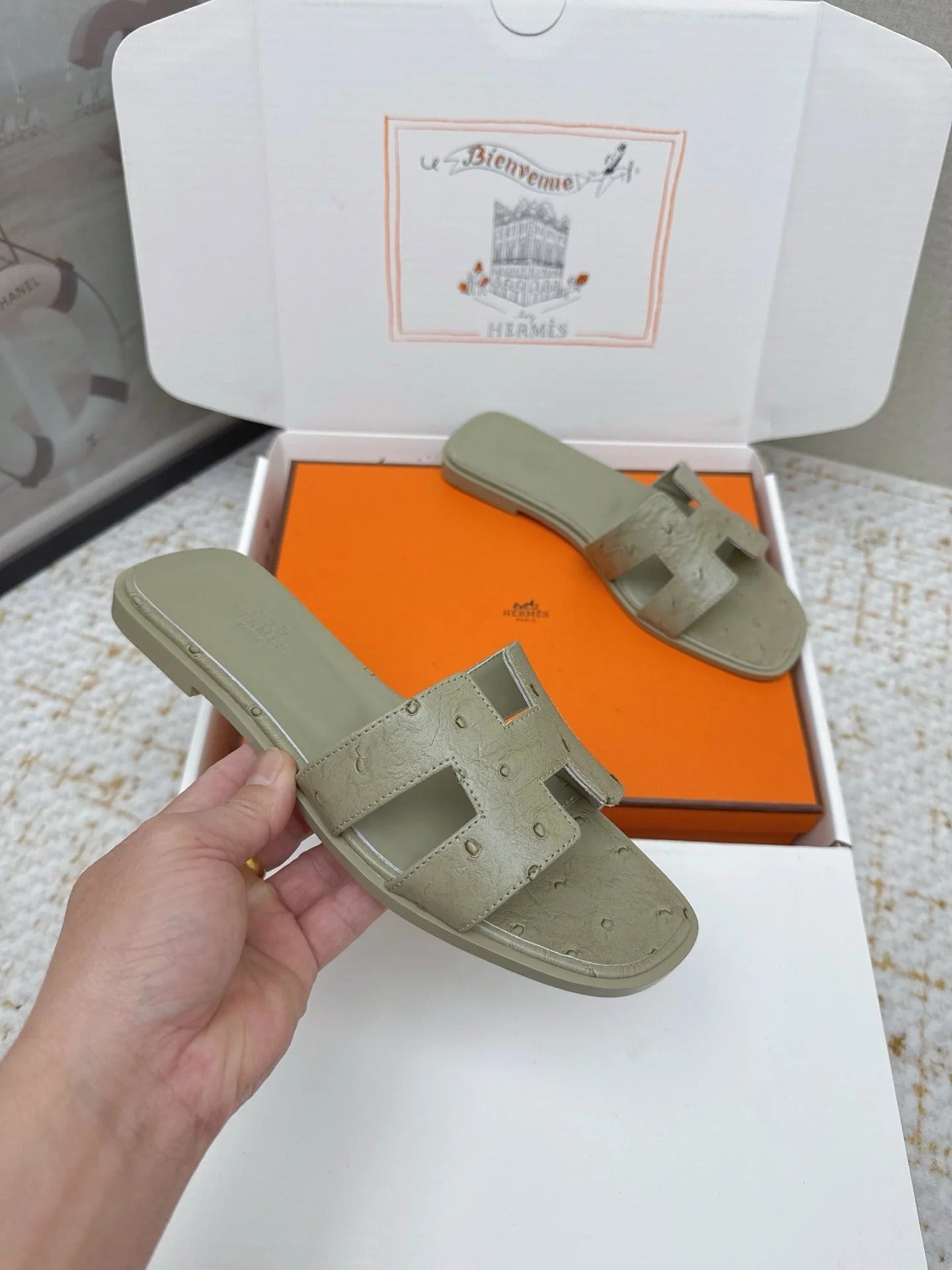 - Material: Sandal in calfskin with iconic "H" cut-out.