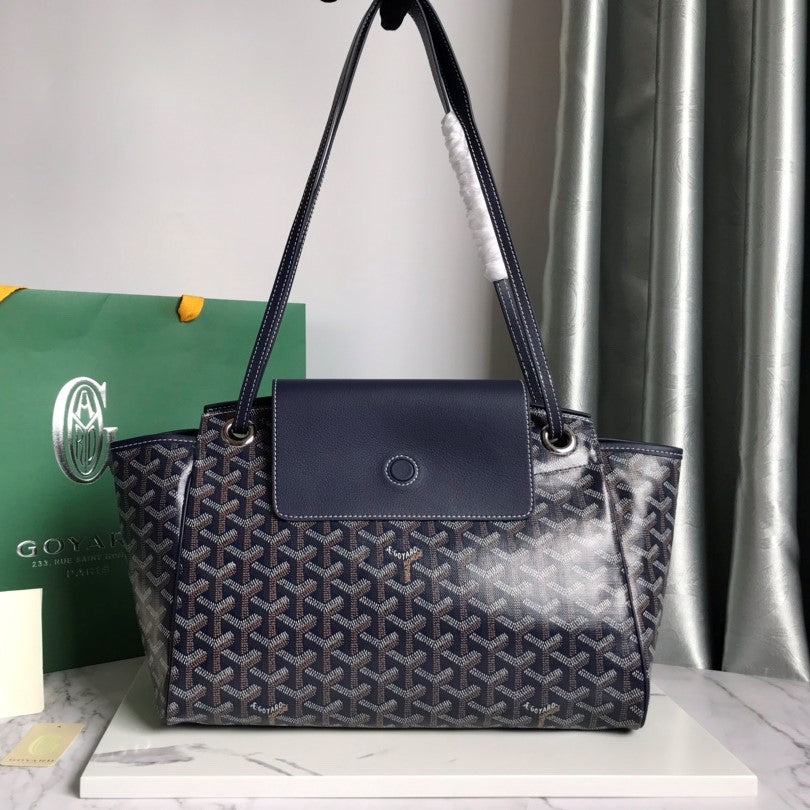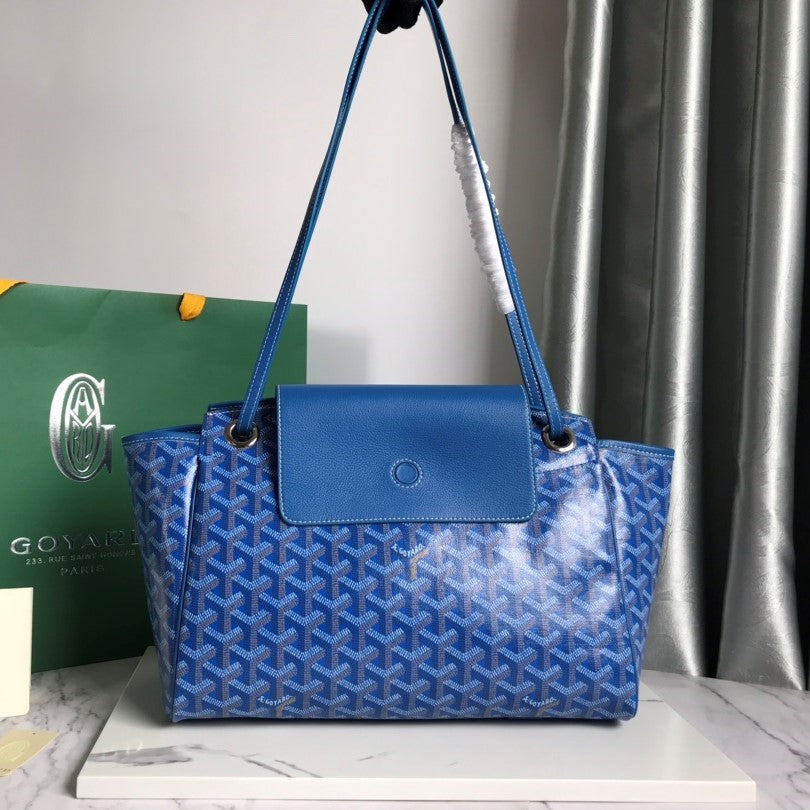 233 BAG 25 IN SAPPHIRE BLUE CALFKIN AND GOYARDINE CANVAS