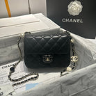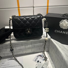 23P Flap Bag 16cm Black Calfskin Siver Hardware