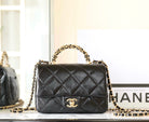 24B Mini Flap Bag With Top Handle 19cm Black Lambskin