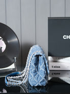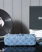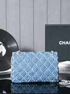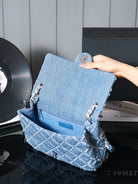 24S Flap Bag 25.5cm Blue Quilted Denim