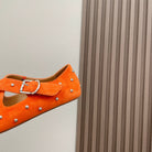 Alaia 2025 Criss Cross With Stud Ballet Flats Orange Suede 293215