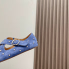 Alaia 2025 Criss Cross With Stud Ballet Flats Royal Blue Suede 293211