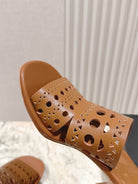 Alaia 2025 Vienne Cutout Kitten-Heel Slide Sandals Brown Leather 293649