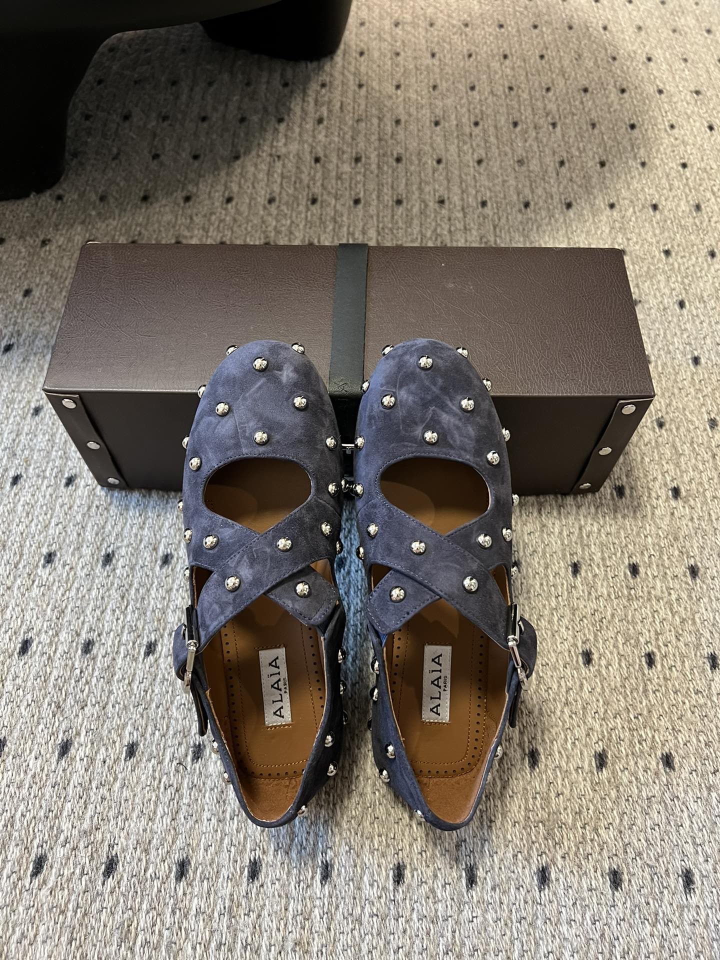 Alaia 25 Criss Cross With Stud Ballet Flats Azure Blue Suede Sheepskin 303691
