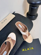 Alaia 25 Cube Thong Mules Nude Satin Sheepskin 297037