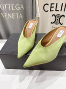 Alaia 25 Cube Wedge Mules Avocado Green Silk Sheepskin 300085