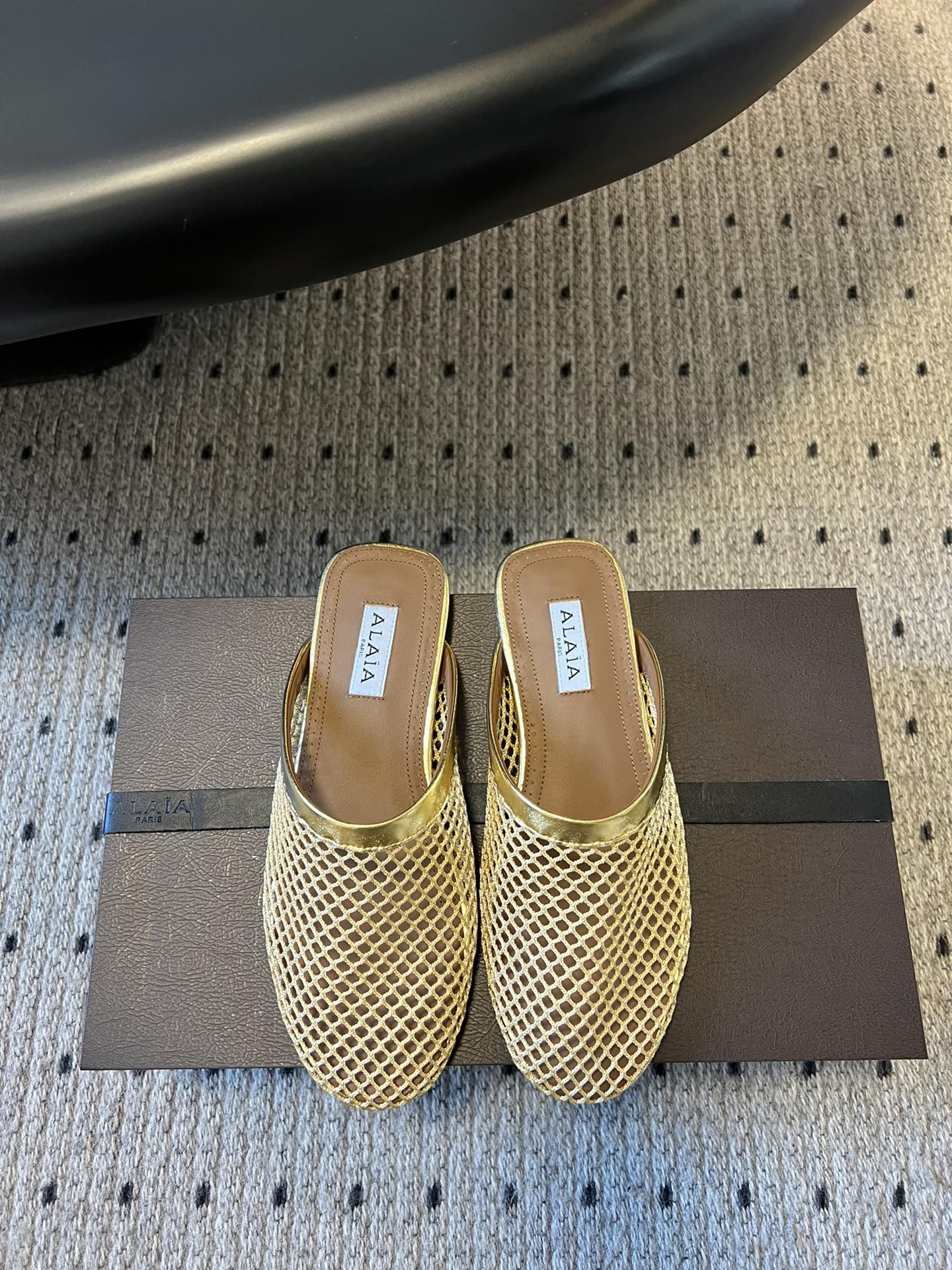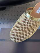 Alaia 25 Fishnet Flat Mules Gold Lampskin 303680