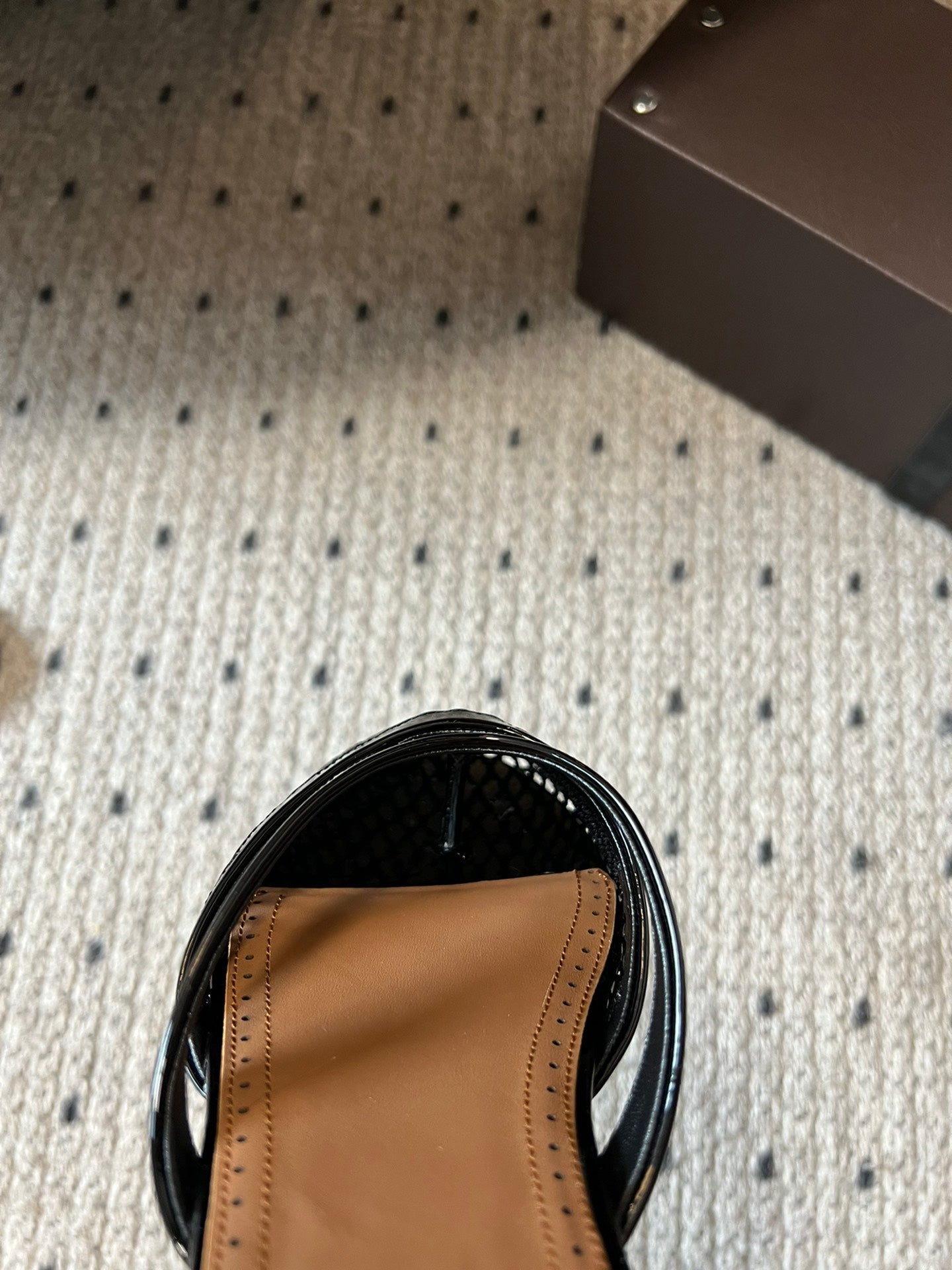 Alaia 25 Infradito Fishnet Flat Mules Black Lampskin 303708