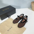 Alaia 25 Laminated Fishnet Ballet Flats Black Lambskin 576444