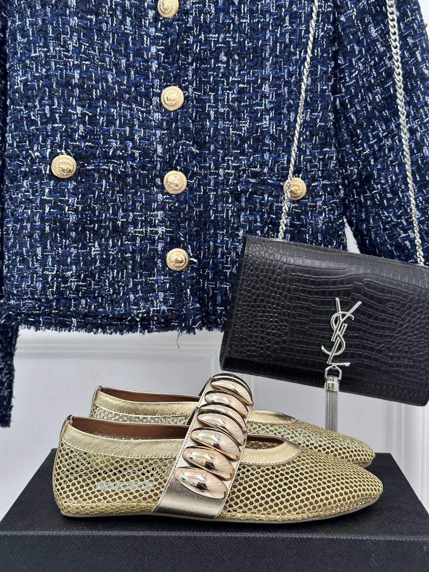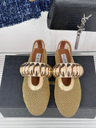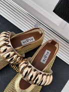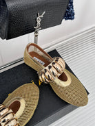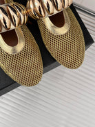 Alaia 25 Mary Jane Mesh Ballet Flats Gold Calfskin 293249