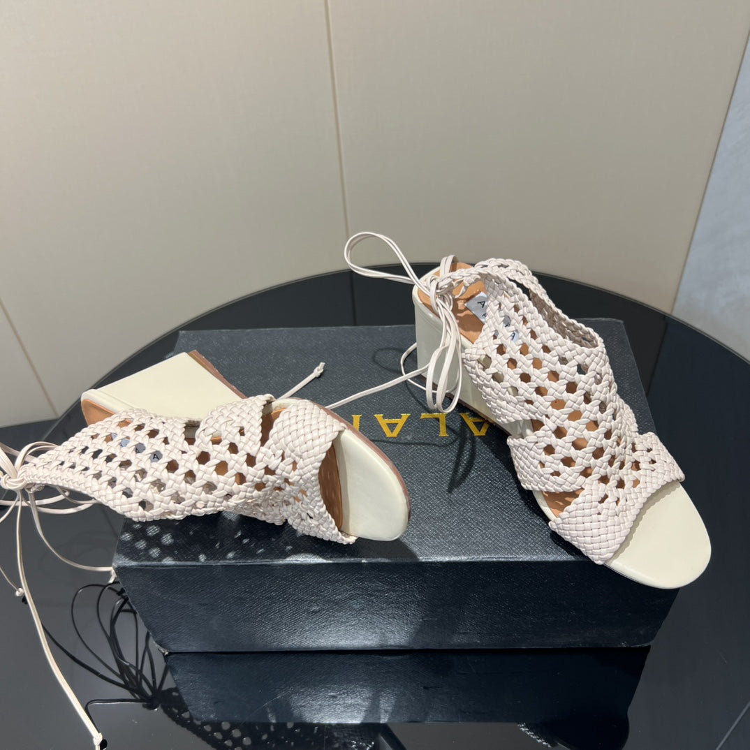 Alaia 25 Round-toe Braided Wedge Sandals 75mm Flamingo Woven Leather433568