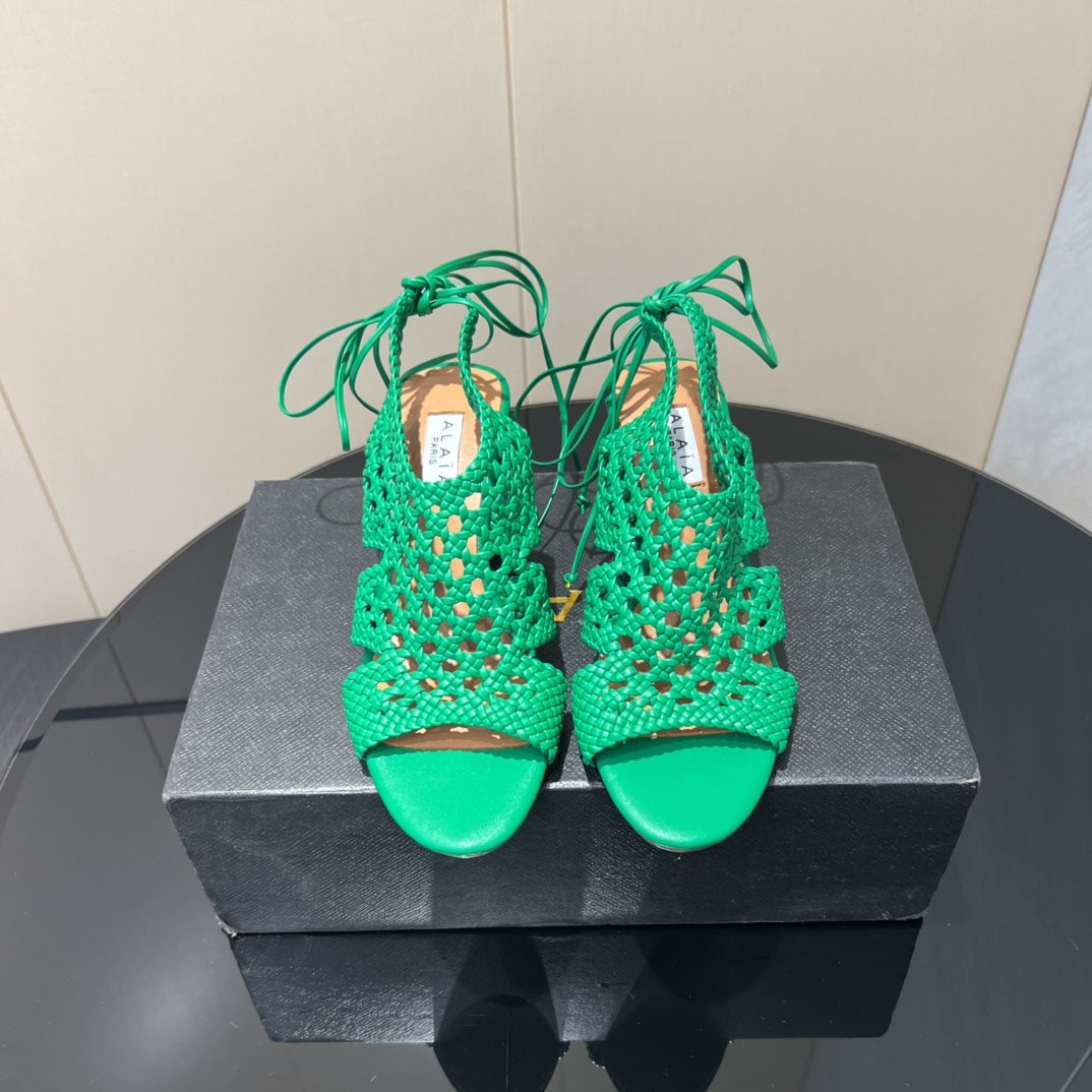 Alaia 25 Round-toe Braided Wedge Sandals 75mm Green Woven Leather 433567