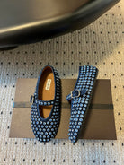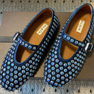 Alaia 25 Strass Ballet Flats Navy Blue Suede Goatskin 303724