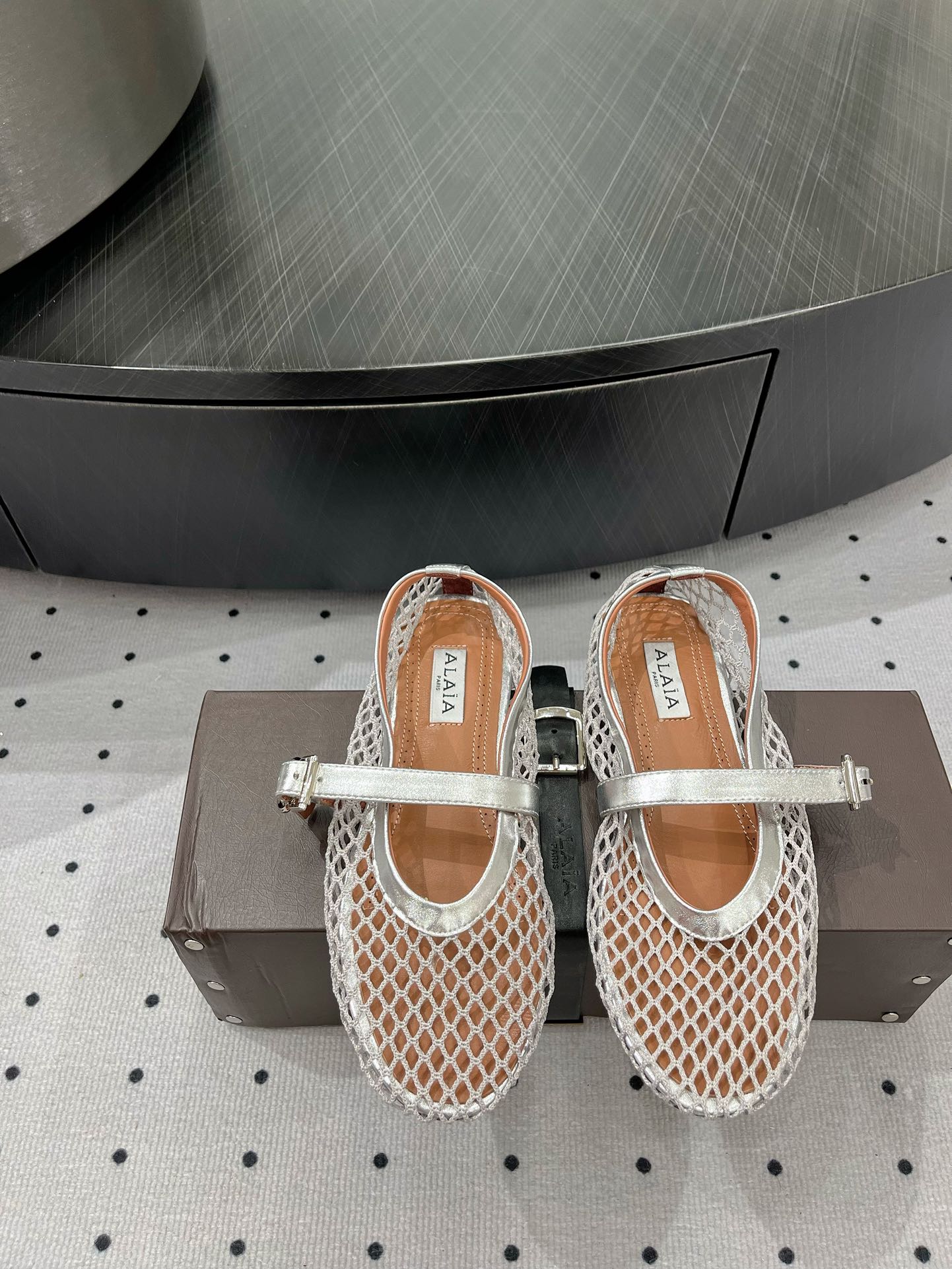 alaia ballet flat fishnet silver metalic lambskin