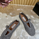 Alaia Ballet Flats In Dark Grey Stretch Woven Sedge 102278