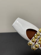 ALAIA BALLET FLATS IN WHITE GLOSSY CALFSKIN WITH GOLD HARDWARE