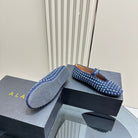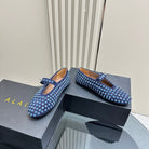 ALAIA CRYSTAL EMBELLISHED BALLET FLATS IN NAVY BLUE SUEDE