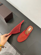 ALAIA FLAT MULES IN CHERRY RED MESH FISHNET