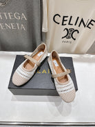 ALAIA MARY JANE FLATS white mix beige woven calfskin pattent