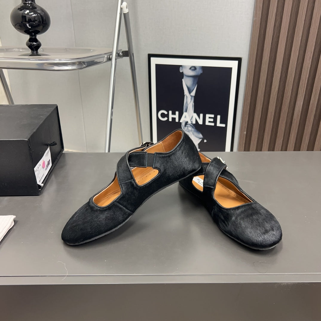 Alaila Criss Cross Ballet Flats In Black Lambskin 996055
