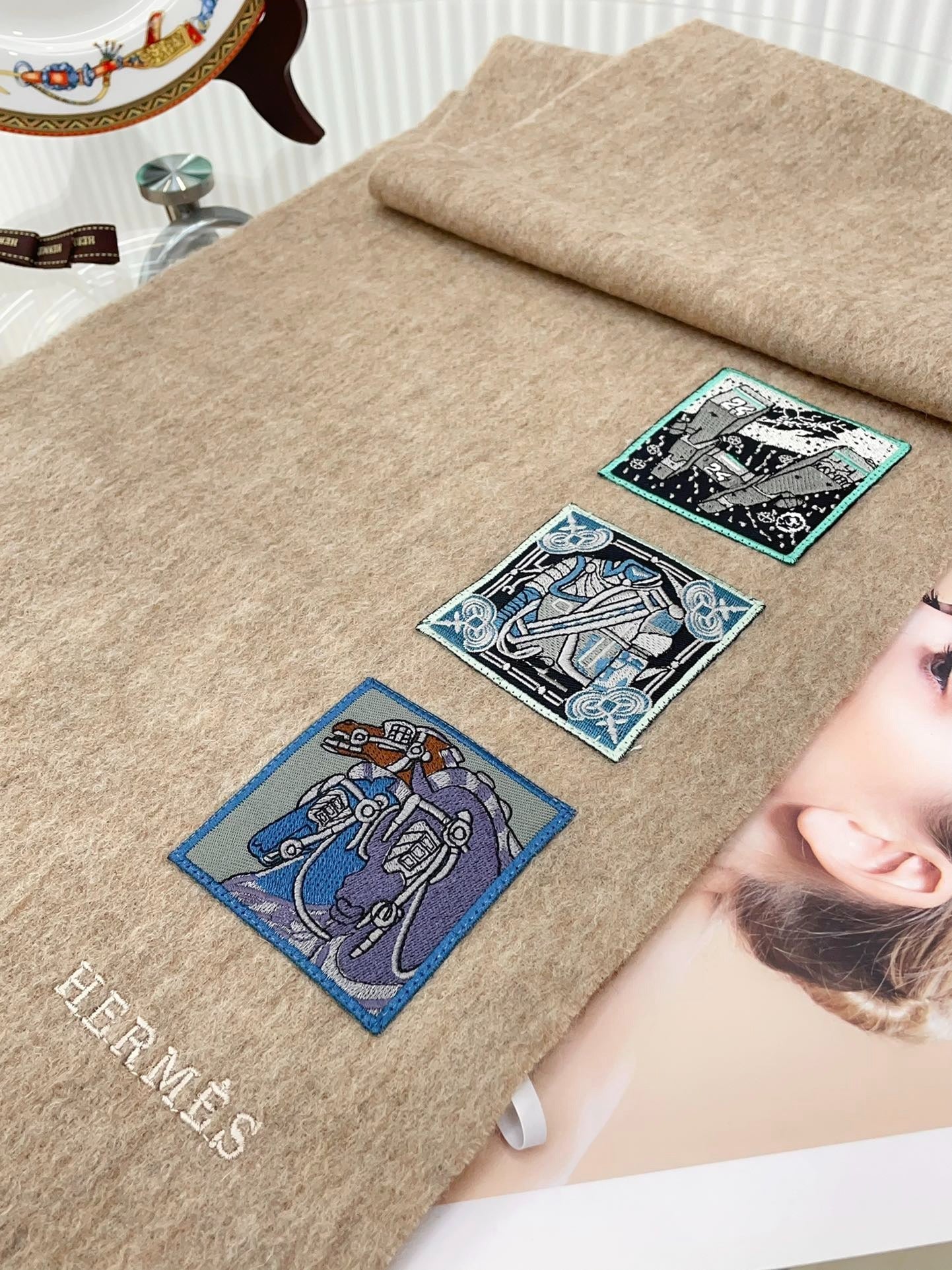 BADGES SOIE MUFFLER 180 CM SCRAF IN TAN BROWN CASHMERE